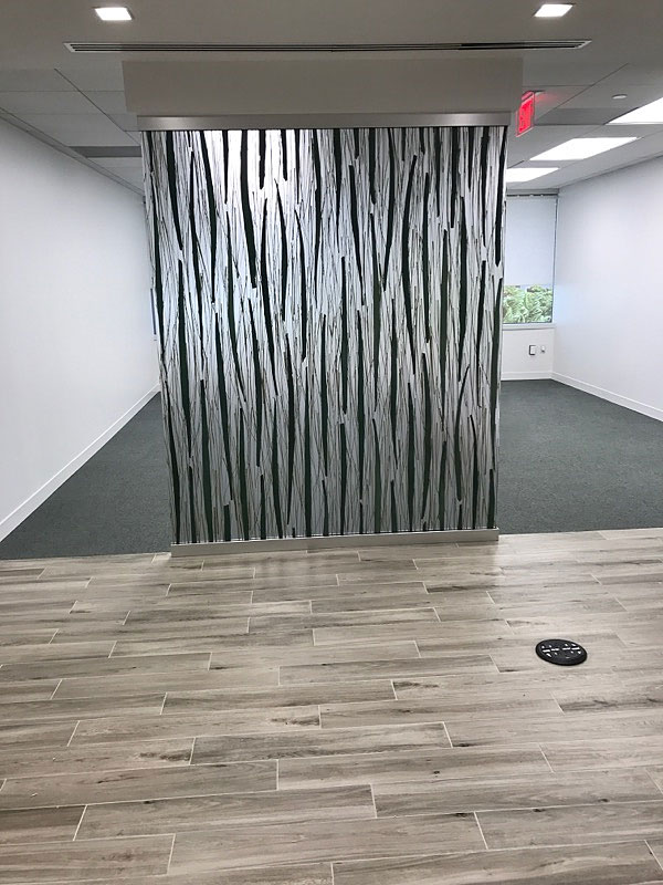 This elegant feature wall entryway adorns the offices of a Miami firm and greets clients with a wow factor that is hard to beat.