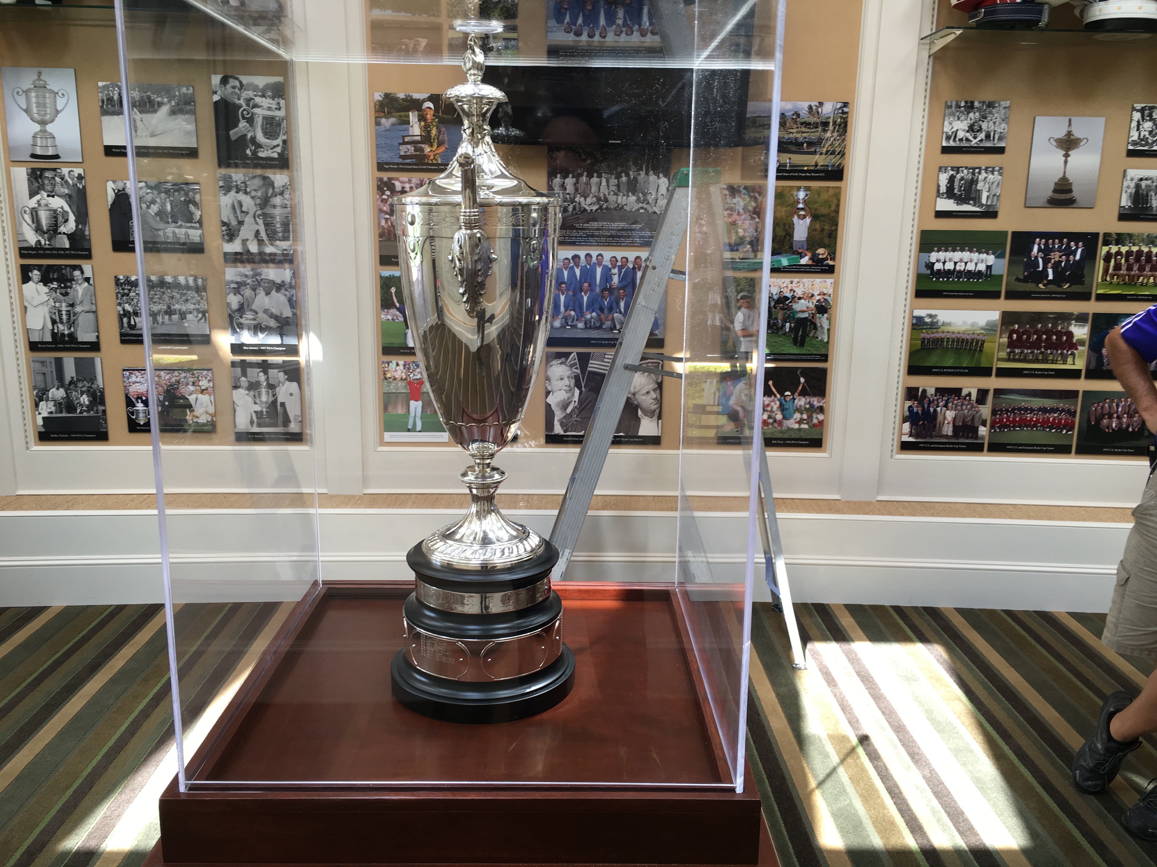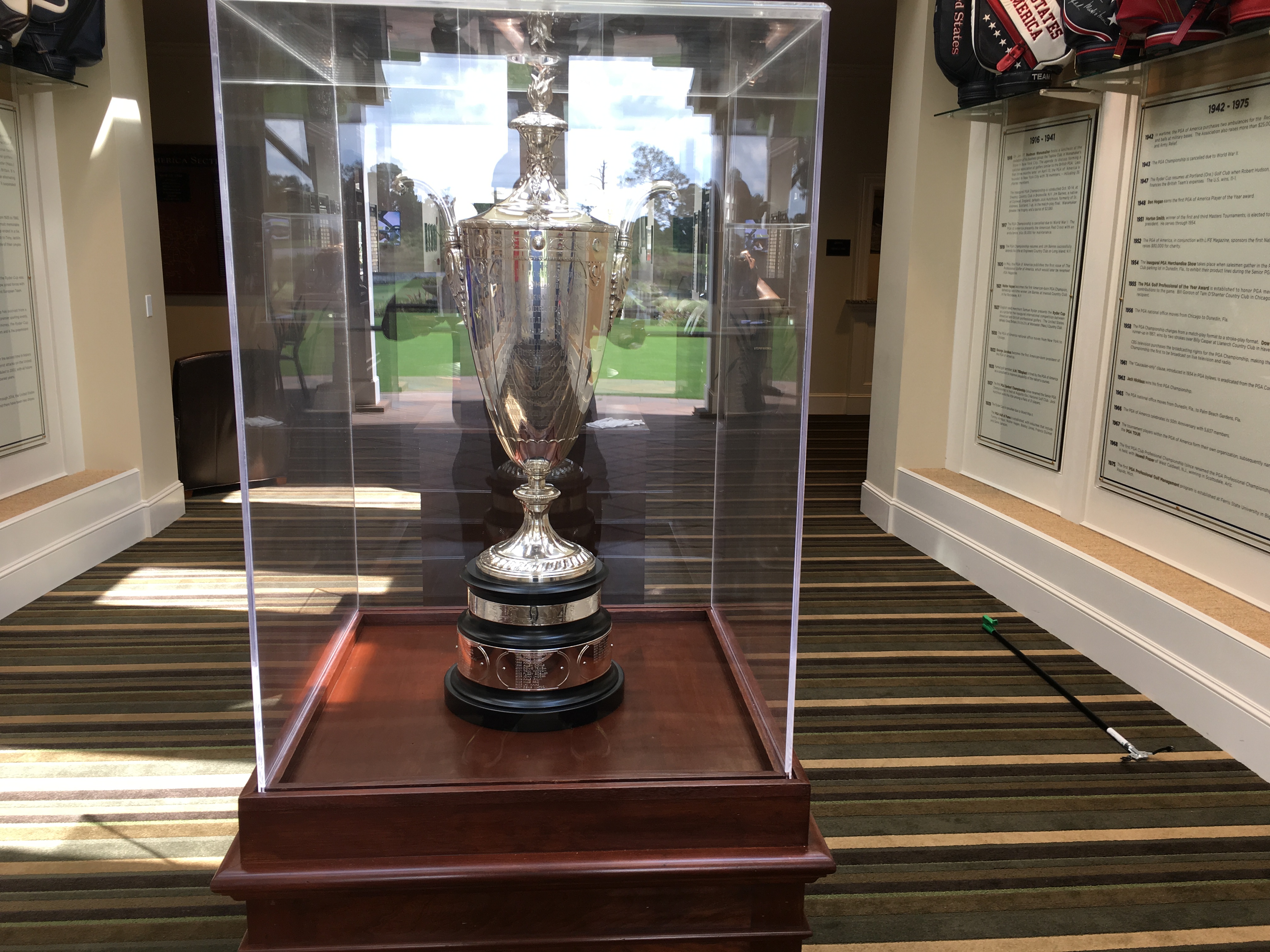 Display case custom-created with Clear Acrylic housing for the PGA Winner’s Trophy. One-half inch clear acrylic sides with 3/4″ clear acrylic top, machined to allow removal as needed.